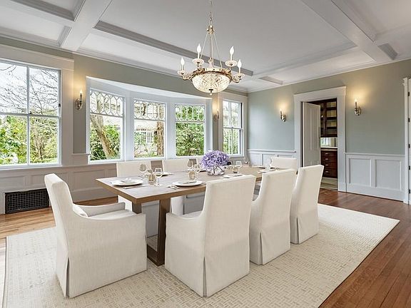 - Din Dscrp: Flooring - Hardwood, Wainscoting, Window(s) - Bay/Bow/Box, Ceiling - Coffered, Crown Molding