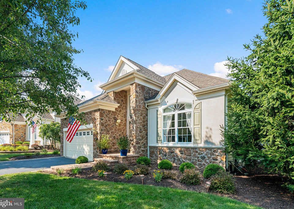This Purdue Farmhouse model sits on a premium lot in the sought-after adult enclave of Lakeview Estates bordered by woods, manicured open space, lake and walking trails offering a unique private setting, tucked away yet just minutes to Newtown Boro, shopping, restaurants & recreation. The home features a gas fireplace in the family room w/vaulted cathedral ceiling and recessed lighting. Hardwood floors in the Foyer, Hall & Living/Dining rooms. The bright and open kitchen has Corian countertops, brand new stainless steel LG appliances and commercial kitchen sink, abundant cabinetry and a breakfast room that opens to the covered porch with a view of the back yard which backs to mature trees with the lake beyond. The large first-floor master suite features a tray ceiling, walk-in closet and luxurious bath w/whirlpool tub, shower and double vanities. You will be impressed with the dramatic open staircase leading to a second level w/large loft suitable for a workout area, sitting room, office, den, etc. The nearly 1800sq ft basement with 9' ceilings just begs to be finished. The lush lawn and plantings benefit from the in-ground irrigation system. Pride of ownership abounds with recent updates including additional recessed lighting, Hunter Douglas plantation shutters and Silhouette shades, LED lighting with compatible dimmers, new front walkway and steps, driveways and rear patio pavers, sump pump, wainscoting, chair rails and crown moldings. Recently painted neutral tones inside and out, this Lakeview Estate home is truly move-in ready, plus 1 year home warranty!