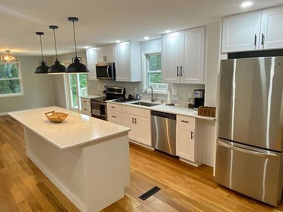 WOW Beautifully remodeled home that boasts over 2700 sq ft. on a quiet cul de sac. Recent updates include new kitchen cabinets, quartz countertops, stainless steel appliances, and hardwood floors throughout entire lower level. This FRESHLY PAINTED home offers an extremely flexible floor plan, boasting 3 additional rooms on the first floor that could be used for offices, living rooms, relaxation spaces, or whatever you need On the first floor you will also find 2 half baths and a brand new washer dryer set. Upstairs you'll find brand new carpet, a beautiful MASTER bedroom with a private en suite bathroom, 3 additional bedrooms and a full bathroom. In the summer enjoy hanging out on the deck and POOL or tending to your garden. Schedule your viewing today, WONT LAST