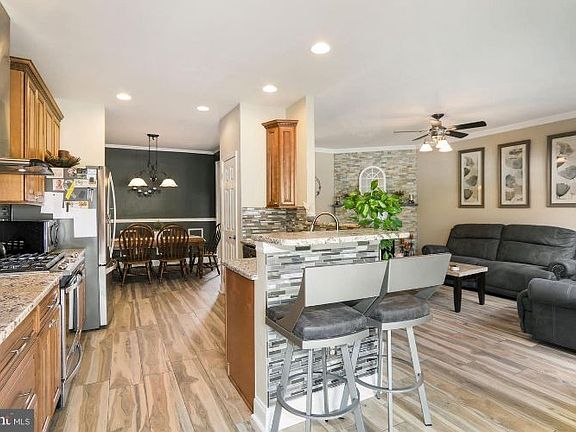 Absolutely stunning, fully upgraded townhouse in desirable Creekview development. A bright two-story foyer welcomes you as you walk in the front door. The first floor has beautiful tile flooring throughout. Enter the dining room and you'll notice details of crown molding and chair rail with plenty of space for indoor dining. Heading into the kitchen you will be delighted to see beautiful oak cabinetry, granite countertops, tile backsplash and stainless-steel appliances. The kitchen provides a breakfast bar, open concept to living room and access to your back yard oasis. Before heading upstairs there is a special room in this unit that offers you your own private spa hot tub surrounded by cedar plank walls and ceiling, great place to unwind after a long day. A half bath completes this floor. The second floor has hardwood floors throughout and provides the convenience of your laundry area, two spacious bedrooms and a full hall bath. Completing the second floor is the primary suite with large walk-in closet and beautifully designed bathroom with double pedestal sinks, tile shower and a large soaking tub. The fully finished basement allows plenty of space for entertaining, a bonus room and the option of a 4th bedroom with closet. The backyard paradise provides plenty of space on the large Trex deck, stone patio with fountain and white vinyl fence. Make your appointment today as this townhouse will not last.