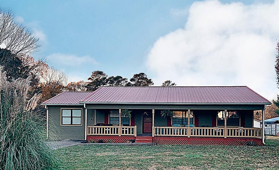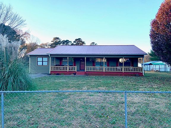 Well kept Ranch home with 4 bedrooms and 3 full bathrooms, open floor plan, large living room and kitchen with bar and dining area. Spacious laundry room, pantry, and closets. Beautiful covered front porch, fenced all-level lot, metal roof, and metal building.