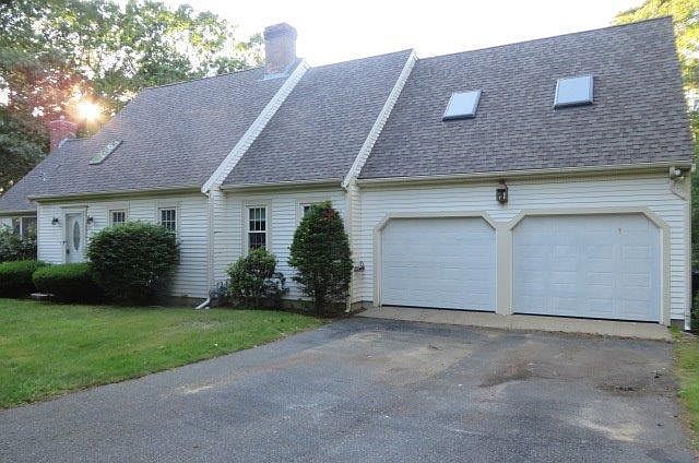 Tucked away on a quiet cul de sac sits this spacious Cape Cod property featuring 3 bedrooms, 2.5 baths & several surprising updates. There are new appliances, a newer roof, all new Anderson windows & doors, new oak wood floors, new garage doors/openers plus a 4 zoned Navien gas heating system. There is a large tiled dining area open to a large kitchen with a breakfast bar, a new gas range, dishwasher and refrigerator. New sliders in the dining area invite you to the rear deck for a summer barbeque or family gathering. Oversized, great for large furniture, the living room offers natural light through skylights plus a fireplace and a glass slider with access to the private deck. A convenient mud room on the first floor is shared with the laundry and a half bath.