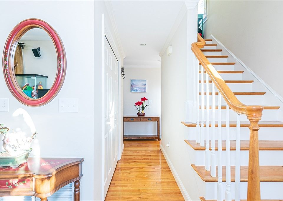 Overlooking beautiful Hardy Pond, this modern Colonial offers the perfect blend of comfort, light, and lifestyle. Tucked away on a quiet dead-end street, the home enjoys serene water views and a strong sense of privacy just minutes from city conveniences. Inside, sunlight fills the main level, featuring a fireplaced living room, a granite island kitchen with stainless steel appliances, and a dining area that opens to a deck and backyard — ideal for easy living and entertaining. Upstairs, the spacious primary suite includes a full bath, along with a second bedroom and guest bath. The third floor offers a flexible bonus space for guests, an office, or a cozy retreat. The unfinished lower level with high ceilings provides room to expand — perfect for an additional living space.. Enjoy sunsets over the pond and quick access to Routes 128, 90, and 2, plus nearby shops, dining, and outdoor recreation. Seller is open to a short-term rent-back, providing flexibility for the new buyer.