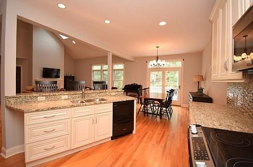 - Kit Dscrp: Flooring - Hardwood, Countertops - Stone/Granite/Solid, Recessed Lighting, Dining Area, Stainless Steel Appliances, Cabinets - Upgraded, Open Floor Plan, Main Level, Remodeled