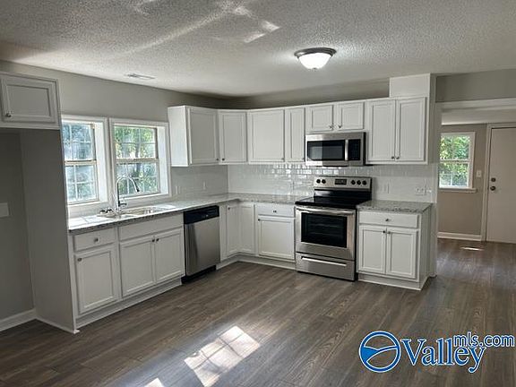 Lovely 3/2 with covered front porch and quiet country setting. This home boasts beautiful kitchen with granite, tile backsplash, and stainless steel appliances. Natural light galore. Spacious yard. Updated lighting, paint and carpet. Newer roof, HVAC and water heater. This home is a must see!! 15 minutes to Huntsville, convenient to Redstone Arsenal and I-65