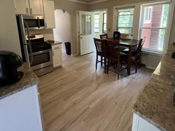This spacious 5 bedroom 2400sq unit is located in the heart of Dorchester's Cedar Grove neighborhood. This unit has a freshly renovated kitchen, Floors and Cabinets have all been replaced and new appliances have been installed. The trolly is located at the bottom of this dead end street giving commuters easy access to downtown Boston! Included in this unit is a Private deck perfect for entertaining and eating out on a summer night. Views of the city and it's skyline are spectacular Just a 5 minute walk to the bars and restaurant of Adams Village this unit it's truly a one of a kind unit and a must see! Owner pays for water bill. Tenants are responsible for gas,electric and cable bills. First and last months rent are required along with renters insurance. Unit has plenty of on street parking and is avalible 9/1/22.