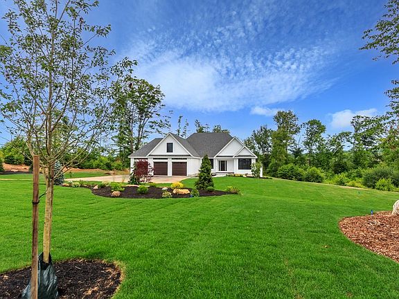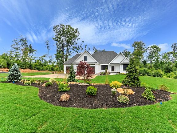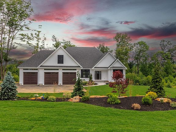 Discover 53 Hilltop Lane, a stunning Farmhouse-style dwelling inspired by Gerrie Pike. Nestled in Countryside Estates, Dunbarton's prestigious enclave, this home graces 5 acres of land, featuring vast front, back, and side yards, perfect for outdoor gatherings. Step inside to a grand entrance with a cathedral ceiling and recessed lighting, setting a welcoming tone. The kitchen, a centerpiece, boasts high-end appliances, a spacious island, Quartz countertops, a custom wooden hood vent, and a wet bar with a wine cooler. The adjoining living room showcases a fireplace with shiplap exterior in a herringbone pattern, adding sophistication. Wood columns delineate the dining area, offering a sense of space. The primary bedroom on the first floor boasts dual walk-in closets and a luxurious bathroom with a custom tile shower and double vanity. An office with subdivision views serves as a functional workspace. Two additional bedrooms and a full bath complete the first floor. A chic mudroom hallway and half bath with laundry facilities add convenience. Upstairs, a sizable bedroom with a private bathroom and walk-in closet awaits, perfect for guests or a media room. Experience the epitome of luxury living at 53 Hilltop Lane.