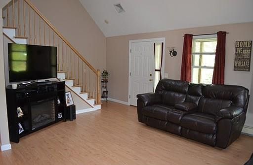 Neat and clean 3 BR 2 BA Cape! Located on a quiet side street, this home is set on .33 acres. Features of the property include a spacious eat in kitchen that opens to a great living room with vaulted ceilings and skylights. The kitchen and living room both have had new flooring recently installed. The master bedroom, located on the first floor, is quite large and has a master bath, new flooring, a vaulted ceiling and skylight. There are also 2 good sized bedrooms on the 2nd floor with wall to wall carpeting and good closet space. Other features include a nicely landscaped lot, fire pit, oversized shed, a wonderful farmers porch, and deck. There is a full unfinished basement, central air conditioning, generator hook up, city water, and we have a passing Title 5 in hand. Call today!