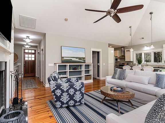 Charming and stylishly designed, this 3-bedroom, 3-bathroom low-country cottage in Hagley Estates is a true gem! Nestled on a private wooded lot surrounded by mature trees, this home offers an indoor-outdoor living experience with a front covered porch, a side deck, and a rear screened-in porch. Step inside to find hardwood flooring throughout the main living area, creating a warm and inviting atmosphere. The open-style kitchen features a spacious work island and a cozy dining area with picturesque views of the wooded yard. Move-in ready, all appliances stay, including the fridge, washer, and dryer. Gather around the wood-burning fireplace for cozy evenings at home. The expansive primary bedroom boasts a large walk-in closet and an attached bathroom with a double vanity, tub, and shower. Sliding glass doors open to the large screened porch, complete with a TV and comfortable seating. Downstairs, a second living area awaits with an additional bedroom, bathroom, and fully equipped kitchen-perfect for guests or multi-generational living. The lower-level kitchen also features a large work island and access to the patio and backyard. Enjoy a seamless blend of comfort and convenience in this beautifully maintained home. Whether entertaining friends or enjoying peaceful solitude, this property offers it all. Don't miss your chance to own this charming retreat - schedule your showing today!