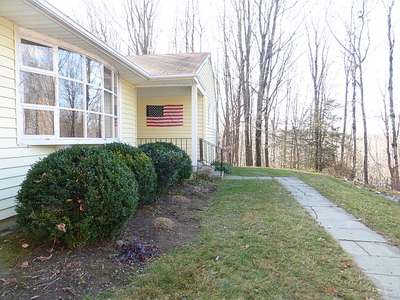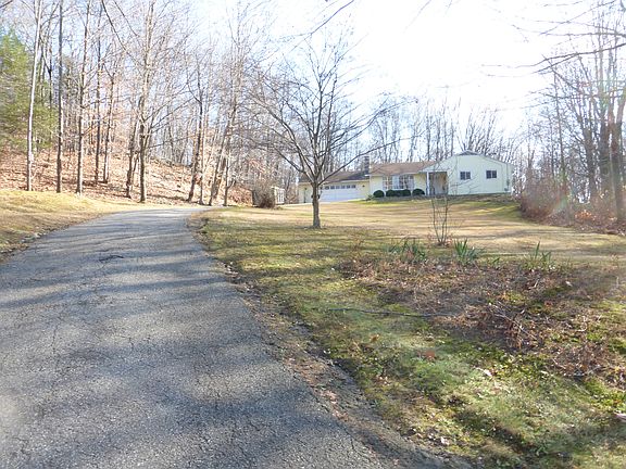 This is a one level ranch style home in an excellent area of Washington with seasonal water views. It has three bedrooms and 2 full baths, living room with a bay window, wood floor and a brick wood burning fireplace. The dining room has sliders to a private wood deck. The home also features a 2 car attached garage, laundry room and eat-in kitchen. It is well sited high on the 3 acres with a large open front lawn and surrounded by mature woodlands. This is an excellent opportunity for a first time buyer, or for someone looking to downsize and stay in Washington. It is an easy to maintain home, located on a quiet town road in a very convenient location.