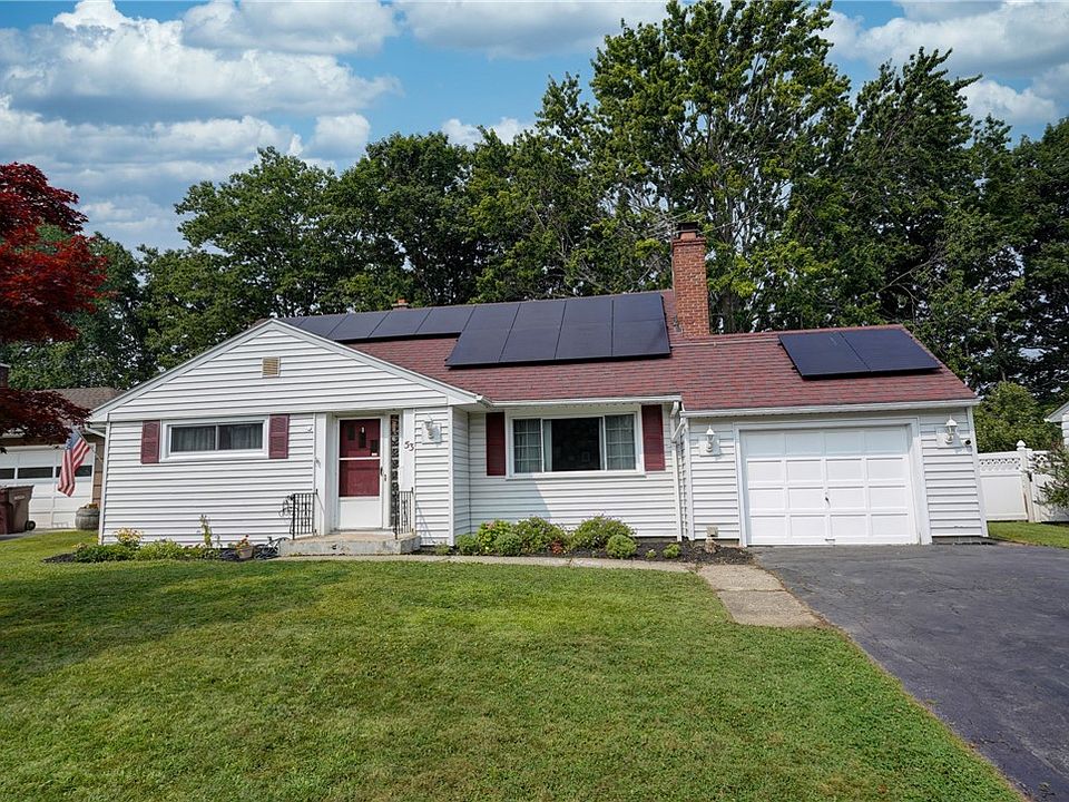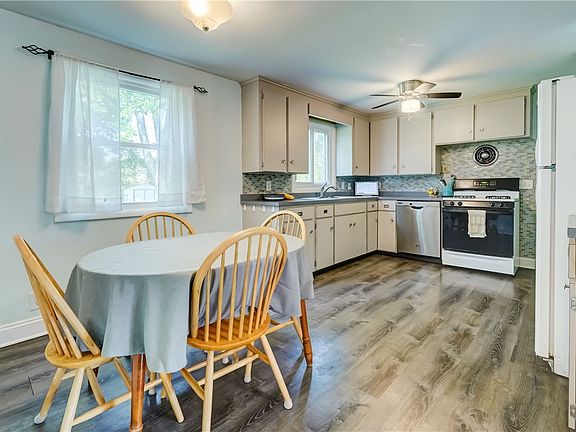 Welcome to this delightful Cape Cod-style home offering nearly 1,400 sq ft of comfortable living space, featuring 4 spacious bedrooms and 2 full bathrooms—including a rare private en-suite bath in the primary suite. With two bedrooms on the main floor and two more upstairs, this layout is perfect for flexible living arrangements or growing households. The bright and inviting living room with built in bookshelves leads to the large kitchen with all appliances included. Many updates include all new windows from 2023, furnace and A/C 2010, water heater 2023, and roof 2013. Outside you will find a fully fenced backyard, ideal for entertaining or letting pets play freely. A storage shed adds even more functionality to the outdoor space. The attached garage is equipped with both front and rear doors, making yard work and equipment access a breeze. The recent addition of solar panels provide an average savings of $100–$150 per month on electricity bills—an incredible value that adds up year after year. Offers on this home are due Tuesday, August 26th at 2pm.