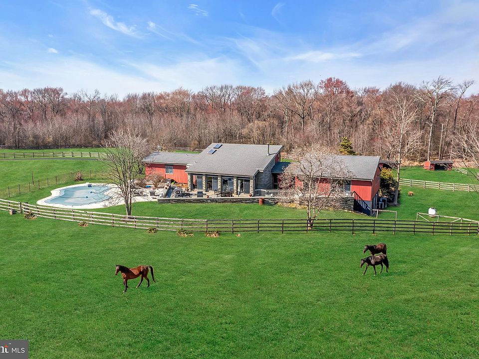 A peaceful oasis in an unparalleled location...Welcome to Contemporary Farms situated on 36.07 ACRES of stunning scenery! This truly spectacular HORSE FARM PROPERTY is set amongst the prime countryside of rural Upper Freehold Township & borders the Assunpink Wildlife Management Area. Your new lifestyle awaits at the quality appointed custom 3 bedroom, 3 full bath CONTEMPORARY HOME with views of pasture or woodlands from every direction. Step into a home that is refreshingly bright & airy, a unique architecture style that evokes trendy yet modern living. The focal point of the home is the delightful open concept space which combines the living room with wood burning fireplace, dining room & gourmet kitchen into a space of pure enjoyment for relaxing & entertaining. The spacious first floor includes: an oversized primary bedroom suite with en-suite full bath & 2 walk-in closets; 2 additional bedrooms; 2 hallway full baths & laundry/mud room plus ample closet space throughout. Not to be missed, the lower level features a walk out access and includes 2 additional rooms (currently used as a family room & music studio) as well as unfinished storage space with the ability to finish in the future. The attached, expansive 3 car garage provides useful space for a car enthusiast or hobbyist. The tranquil acreage creates a secluded setting to relax outdoors amongst the varying entertaining spaces which include a bluestone patio, deck & terraces. The perfectly placed inground gunite pool is the highlight of the outdoor area & provides a relaxing escape & fun for all. This FARM ASSESSED property truly is an amazing combination for a sizable home on pristine acreage which remains a blank canvas for equestrian or boutique agricultural endeavors. The practical metal sided horse barn can host up to 10 stalls and is currently modified for ease of turnout and accessibility to grazing areas. Lush fenced pastures encompass the majority of the property creating an incredible haven for any horse. For outdoor enthusiasts, revel in the surrounding beauty of the natural wildlife and environmental habitats with trail access onto thousands of acres of protected land. Enjoy the adventure of exploring your own property which includes a stocked pond (bass & catfish!) & wooded paths. An abundance of open space yet still close to major conveniences such as commuter access to the NJ Turnpike with metro Philadelphia within 40 minutes & under an hour to greater Manhattan/NYC. Minutes to whimsical downtown historic Allentown & within 25 minutes to renowned Princeton. Experience the pure delight and tranquility of rural living on this enchanting horse farm!
