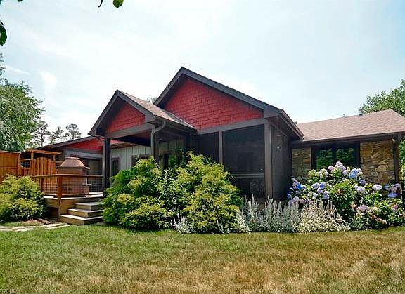Stone-front Craftsman Lodge completely renovated and enlarged in 2008 by HomeSource Builders and decorated by Hugo Arce. Three bedrooms/three baths on a one acre lot fronting the golf course with vegetable, flower and fruit tree gardens. A private, outdoor shower and hot tub off the master suite, top-of-the-line finishes and a convenient North Asheville location make this a perfect oasis.