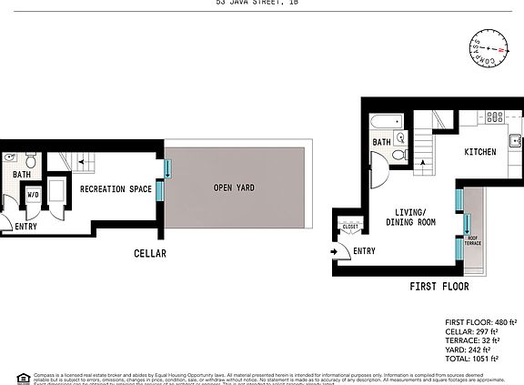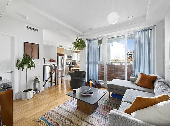 This stunning, one-of-a-kind, NO FEE one bedroom duplex features your very own private courtyard and balcony with modern finishes and amenities for rent in Greenpoint, Brooklyn. Upon entering Apartment 1B, an open living room offers floor-to-ceiling windows and sliding glass doors to the balcony. The separate and spacious kitchen offers full-sized stainless steel appliances that pair beautifully with Caesarstone countertops and custom wood and glass cabinetry. Plenty of storage space, ample closets, a fully tiled bath with deep-soaking tub, central heating and air conditioning, in-unit stackable washer/dryer, kitchen garbage disposal and a choice of Verizon FiOS or Spectrum cable service provides practical convenience. The lower level features an en suite half bath, oversized built out closets and floor-to-ceiling windows open to the private 250 square foot courtyard oasis. 53 Java Street stands adjacent to the Greenpoint waterfront and around the corner from the East River Ferry, Franklin Street, Manhattan Avenue, and vibrant WNYC Transmitter Park .