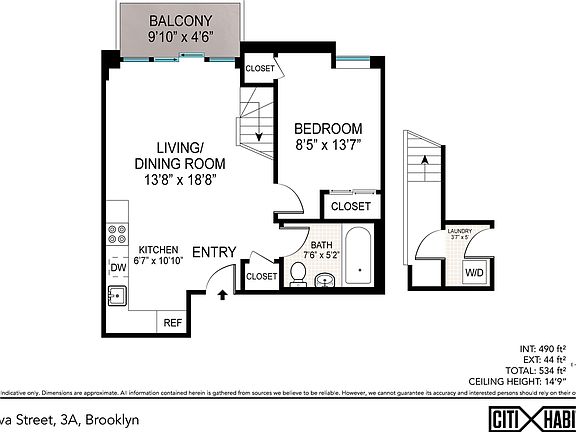 Stunning one bedroom Condo Loft with double height ceilings and balcony.