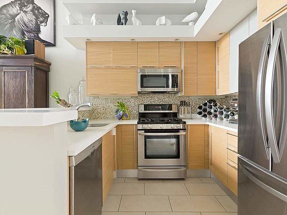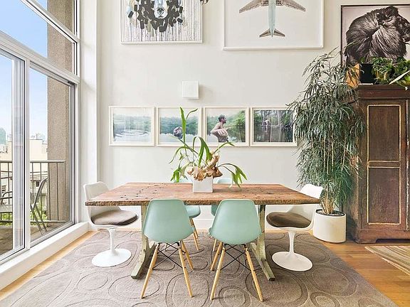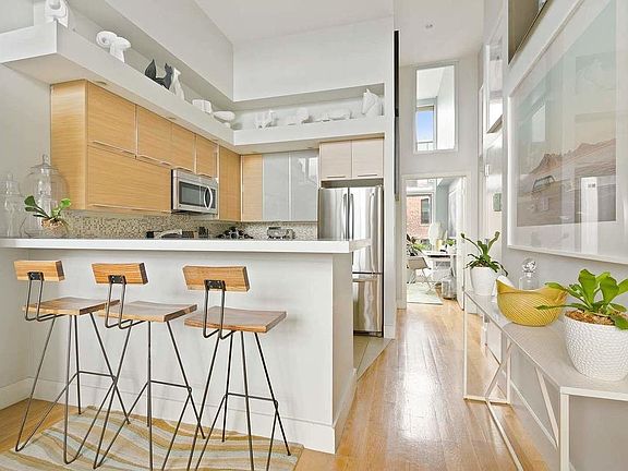 New & with Water Views-This voluminous 1,500 sq. ft. triplex encompassing the top floors offers two spacious bedrooms, two bathrooms, and a flexible 3rd bedroom or home office in the heart of Greenpoint. A double-height living area emphasizes the airy light-filled layout. A well-outfitted kitchen is appointed with custom cabinetry, tasteful finishes, and stainless appliances. Both bathrooms provide ample space to pamper and unwind. The indoors and outdoors are harmoniously combined with 3 terraces, 2 on the lower level, and one adjoining the 2nd-floor flex space. The pièces de résistance is an enormous private roof deck, offering an ideal sanctuary to entertain, recharge, and take in the sprawling city and river views. Central air and in-unit laundry add to the conveniences of this stunning home. Pet friendly with low monthlies, and well located near Transmitter Park, Greenpoint Ferry Service, the G and L subway lines, and scores of dining options. An exceptional condo find in North Brooklyn!