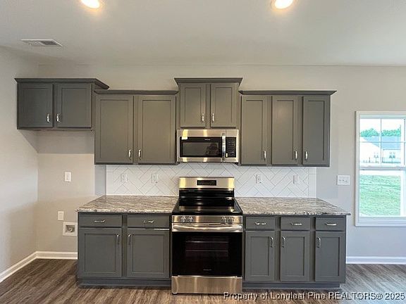 Beautiful new construction 3 bedroom/2 full bath Ranch home located in the Jones Creek Meadows subdivision in Lillington. Home features open floor plan with large living room, kitchen with granite countertops, stainless steel appliances and LVP flooring in main traffic areas. Spacious primary bedroom with walk in close.! Covered front porch, rear patio and 2 car garage. Convenient to Fort Bragg.