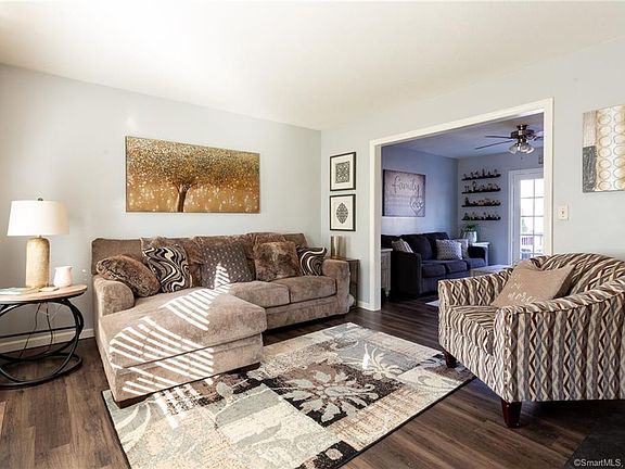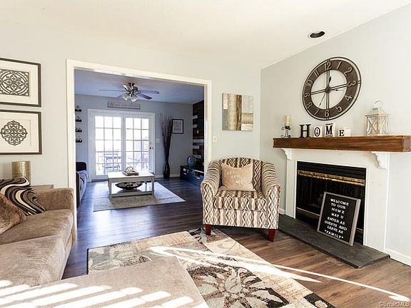 Here's the one you've been waiting for, don't delay in seeing this lovely Bunker Hill Colonial. Nicely updated kitchen with center island, formal dining room, gas fireplace in the living room, family room with French doors to the large deck and back yard. All tastefully painted and LVP floor throughout the first floor. Powder room and laundry room conveniently located on the main level. Second floor features the primary bedroom with large walk-in closet and full bath, plus two more bedrooms and another full bath. The lower level offers 3 finished rooms, with painted concrete floor and carpeting, and an attractive mural that is Insta worthy! One room serves as a home office, exercise room, extra storage...your home, your choice! Two car garage with pull down attic for storage (another attic over main house, too!), CAIR, gas heat and gas tankless water heater just add to the conveniences in this great home. All nestled on .26 acres in one of the more desirable neighborhoods in Waterbury. OFFERS TO BE REVIEWED WITH SELLER ON MONDAY EVENING, 3/15/21. PLEASE SUBMIT ALL OFFERS ASAP. There are exterior cameras that may record audio and video. Bar in the lower level and the wall mounted elec fireplace in the family room are negotiable.