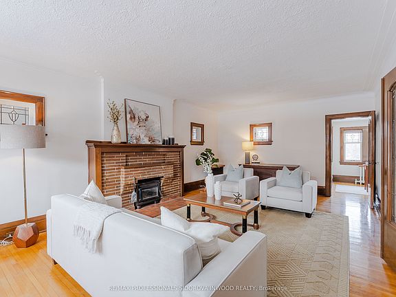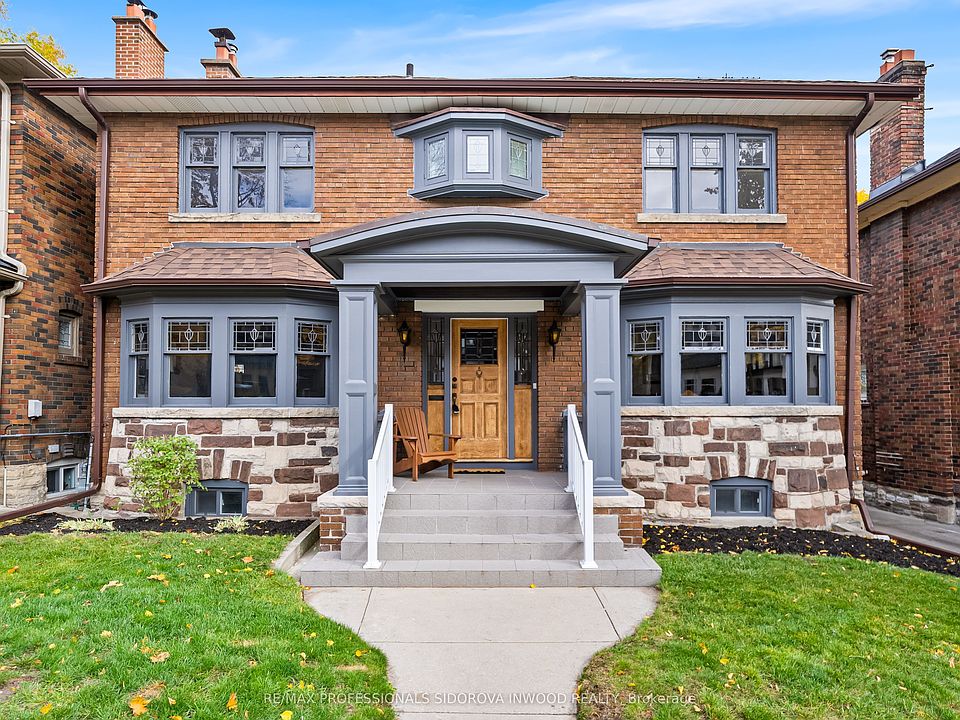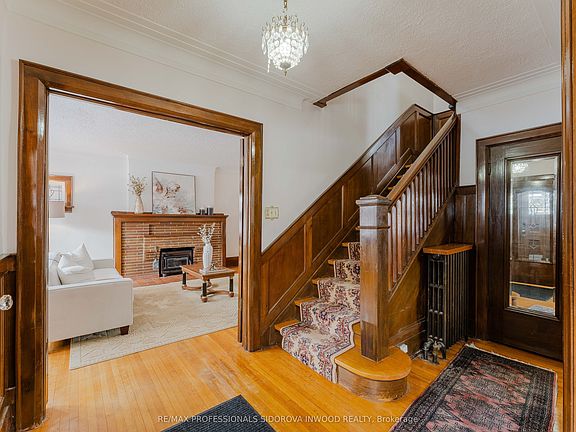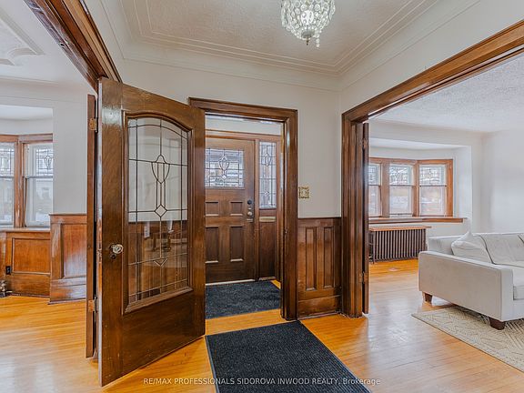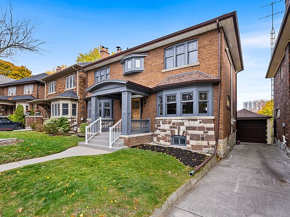 Welcome to this classic centre plan 2 storey detached home. Located on a desirable, tree-lined street in the heart of Prime High Park North / Bloor West Village. Offering timeless character and generous proportions, this inviting family home features 4 bedrooms and 2 bathrooms, nestled in a family neighbourhood known for its strong sense of community. Step into an elegant foyer highlighted by detailed wainscoting, leaded glass windows & rich hardwood flrs that flow thru-out the home. The spectacular, oversized living rm is perfect for both everyday living & entertaining, featuring a beautiful fireplace, leaded glass accents, & expansive bay windows that flood the space w/ natural light. French doors open seamlessly into the very large dining rm, complete w/classic wainscoting & ample room for family gatherings & dinner parties.The bright, functional kitchen offers a convenient walk-out. Upstairs, the 2nd flr showcases a spacious primary bedrm w/his & her closets, along w/3 additional sun-filled & generously sized bedrms, providing flexible space for growing families. Lrg finished bsmt offers additional living space complete w/laundry & utility rm. Outside, the private driveway and detached garage leads to a terraced backyard, a true highlight-very peaceful and secluded, with mature trees, multiple levels for breathtaking views of High Park, & stone patio ideal for lounging, entertaining, or quiet mornings with a coffee. Surrounded by greenery, it feels like a natural retreat in the heart of the city. Unbeatable location next to the local library and half a block to vibrant Bloor Street with its array of chic boutiques, gyms, restaurants, cafés, bars, & subway access. Only one block to the majestic High Park. Surrounded by top-rated schools including Runnymede PS, Humberside CI, Ursula Franklin Academy. Just 15 minutes to downtown Toronto or Pearson Airport. A rare opportunity to own a character-filled home in one of Toronto's most sought-after neighbourhoods.