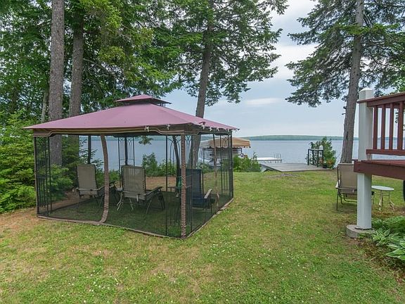 Unique waterfront compound has a lakeside 2 bedroom, 3 bath year round home with deck & balcony, modern eat-in kitchen, open floor concept with living room & dining room areas & full bath. 2nd story has master bedroom with full bath plus guest room & family room with another full bath. The auto backup generator means you'll hardly notice if the power goes out! Across the road is the oversized 30.5 x 36.5 2-car garage with bunkhouse above. Property also includes a small garden shed & a 20 x 36 boat house. That's just the beginning! Sale includes all furnishings & appliances in both home & bunkhouse as well as dock, boat lift, a pontoon boat, & ATV & more. The bunkhouse has 4 bedrooms, 2 full & 2 half baths & HWBB heat, plus it own washer, dryer, large safe & refrigerator. All you need are your clothes & some groceries & your ready for lakeside living at it's best with plenty of room for guests, friends or relatives. Accessible year round & the snowmobile and ATV trails are right there!