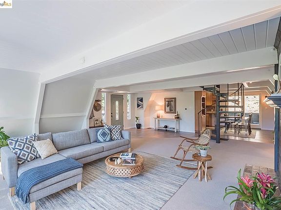 3+ Bedrooms and 3 Bathrooms. An industrial loft feeling A-frame home tucked into the Orinda Hills. Live among the trees and birds in this unique property with suburban benefits including top rated schools. This enchanting hideaway is composed of 3 bedrooms and 2 bathrooms in the upstairs half of the house. At the lower level (with its own separate entrance) is a space with is own updated bathroom, a living area large enough to be furnished with a bed couch and table; there are also laundry hook-ups here and a tiled space with imagined possibilities.