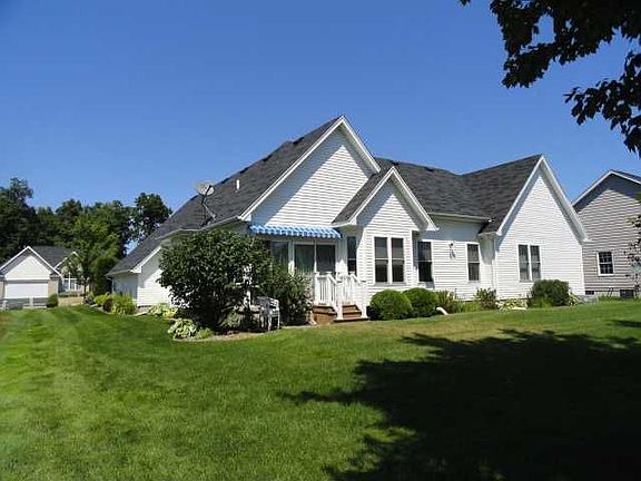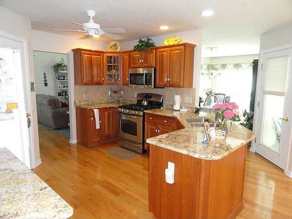 Your dream ranch built in 2002 and still like new. Dining rm & dinette have bay areas and hardwood floors. New granite counter tops in kitchen plus hardwood floors. First floor laundry w/ hrdwd, Florida room with rear awning. Spacious great room is open to the formal dining room. Garage storage area is full depth and has utility tub plus floor drain. Wheelchair ramp is built inside garage. 12 course bsmt. High eff gas furnace, sprinkler & security system. Quiet low traffic neighborhood.