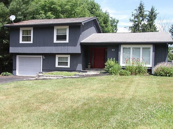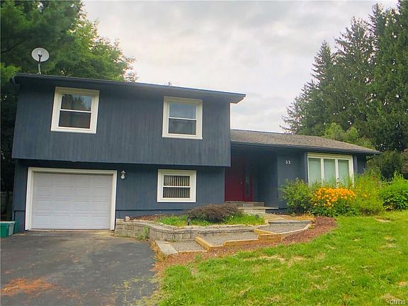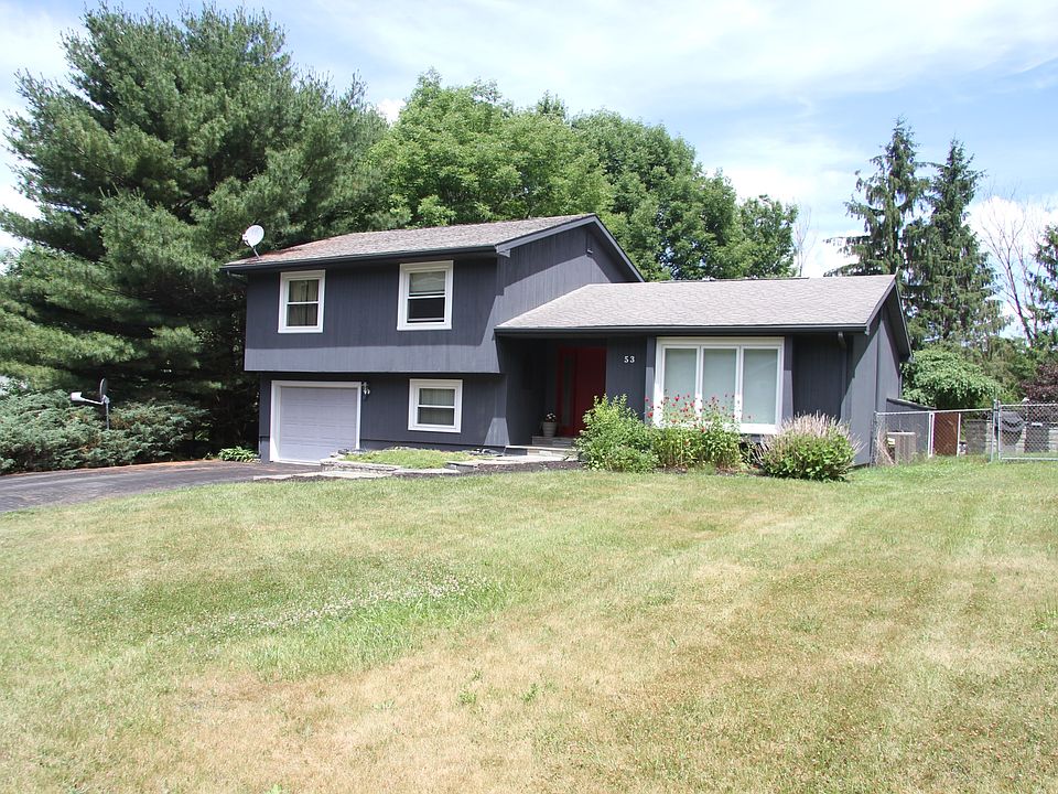 Welcome to this 3 bedroom 2 full bath tri-level style home situated at the end of a no thru traffic street. You are welcomed through the front door into the foyer that opens into the spacious living room. You will appreciate the gleaming hardwood floors that transition from the living into the formal dining room. The Dining room has a sliding glass door that leads to the back deck overlooking the octagonal pool and beautiful back yard. Adjacent to the dining room is the updated kitchen that features corian countertops and stainless appliances. The 2nd floor houses the 3 bedrooms and a newly renovated bath. The bedrooms are adequate size and 2 of which feature double closets. The lower level has a family room, an additional full bath, and the entrance to the oversized attached 1 car garage.