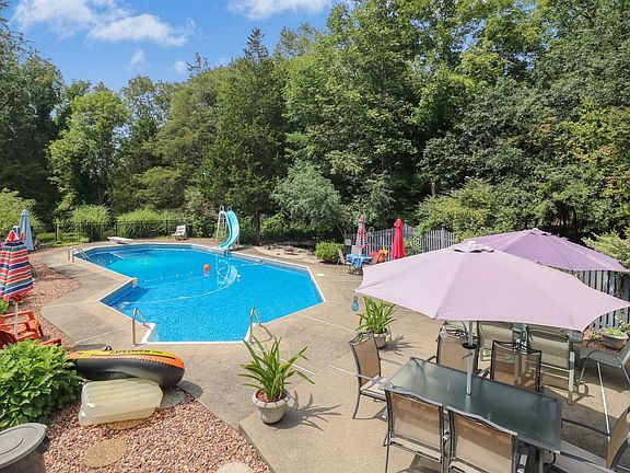 Beautiful four bedroom two and half bathroom colonial home. The spectacular over acre property features lush landscaping, in ground pool, koi pond, screened in porch, and extensive entertaining space. Two car attached garage and room for a dozen cars in the driveway. The first floor features a large kitchen with lots of cabinets and counter tops, island and breakfast nook, two fridges and large freezer. Large laundry room, half bathroom, formal living room, cozy family room with fireplace and a formal dining room. Great screened in porch off kitchen. Second level features a grand master suite, with a master bathroom, make-up counter, Jacuzzi tub, separate shower room and large walk in closet. Three additional bedrooms and secondary full bathroom. Interior and walk out access to the basement with plenty of storage/playroom. Don't miss the chance to be the second owners of this fabulous home.