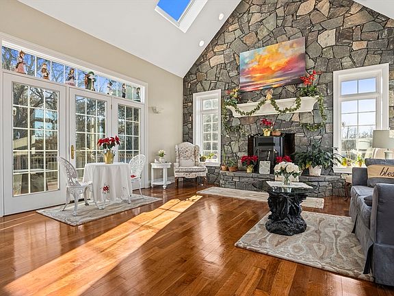 Welcome to Linden Road, the most upscale neighborhood in this wonderful town. Surrounded by apple trees, this address boasts the largest lot in Linden with over 33 acres! Imagine the possibility of private wooded trails, horseback riding,a large barn, or just an abundance of privacy for your needs. As you enter the home, you will be drawn to the beautiful cherry floors throughout along with tile bathrooms. There are three fireplaces in the first level including a massive floor to ceiling stone fireplace in the formal living room. The second level also has a fireplaced bedroom area with a whirlpool bath plus a glass shower. Off the dining area, there is a year round glass room with beautiful views of the wooded area. All four bedrooms are on the second level with a new "honeymoon suite" area with its own private entrance. This beautiful space could easily be used as an au pair suite or a great gameroom. This unique, once in a lifetime home could be yours! Owner/Broker Interest.