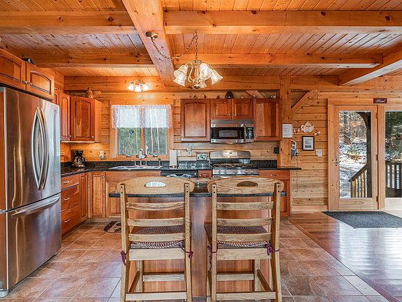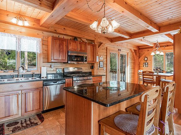REMARKABLE LAKEFRONT OPPORTUNITY - Create memories to last a lifetime at this gorgeous Long Lake compound on 5.98 acres featuring a 3 Bedroom 3 Bath Timber frame home built in 2008 accompanied by a charming rustic 1 Bedroom 1 Bathroom cottage nestled along the beautiful shoreline. The main home offers a spacious floor plan with granite kitchen, island and stainless appliances with dining area open to a large living room, cozy wood stove and cathedral ceiling to open loft space and views of Long Lake from nearly every room. You'll appreciate the stunning craftsmanship, modern bathrooms, first floor laundry, and finished daylight basement off 1 car garage offers a studio area with full bathroom for guests. Relax or entertain on the front deck or by the camp fire overlooking the lake in this private setting. Experience true Maine lake life by spending time in the cottage with wrap around deck, wood stove, and marvelous woodwork throughout.