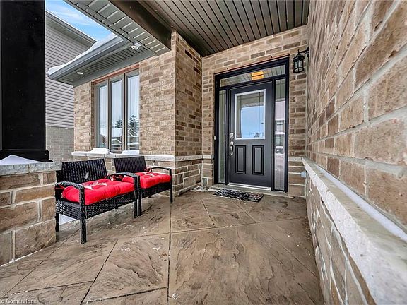 Welcome to this beautifully crafted 2021 Losani-built bungalow, where modern elegance meets small-town charm. Designed for both comfort and style, this 3-bedroom, 2-bathroom home features a bright, open-concept layout with soaring 9-foot ceilings and a stunning cathedral ceiling in the great room, creating a spacious and airy feel. Thoughtful design elements, including custom wall moulding, add a touch of sophistication and character throughout. Hardwood flooring over a high-performance subfloor enhances both durability and warmth in the main living areas. The gourmet kitchen is a true showpiece, boasting rich wood cabinetry, sleek black quartz countertops, a classic subway tile backsplash, and valance lighting, offering both functionality and style. The convenience of main-floor laundry makes everyday living effortless. Step outside to your fully fenced backyard, complete with a deck and gas line for your BBQ, perfect for outdoor gatherings and relaxation. Additional highlights include an insulated double garage for year-round convenience, a high-efficiency Carrier A/C and furnace with humidifier and media air cleaner, and a 3-piece rough-in for a basement bathroom, giving you the opportunity to expand your living space. Nestled in Canada’s prettiest little town, this home is ideally located in a thriving community with a playground just around the corner and easy access to recreational centers, grocery stores, big-box retailers, and local artisans. Enjoy an active lifestyle with kayaking on the Grand River, exploring scenic nature trails, and taking in all the charm this town has to offer.