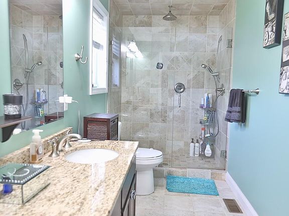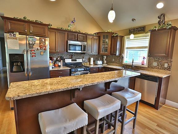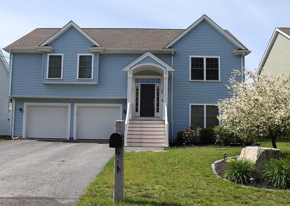 Meticulous 5 year young split level home located in Fall River's South End near Tiverton line. Your guests are greeted by a large covered entry with decorative columns. Large open floor plan with high cathedral ceilings. Your guests will be envious of your kitchen with its large center island and granite counter tops. The innovated floor plan has a master bedroom with a tray ceiling and master bath with granite double bowl sink, a walk in tile shower stall with a rainmaker faucet and a walk in closet. In the foyer area downstairs is a closet, a storage closet and a storage cabinet and counter top area. Downstairs has a large finished family room, a half bath and laundry area. The garage is large enough for 2 cars plus some storage. The back yard has lots of space for all your entertaining.