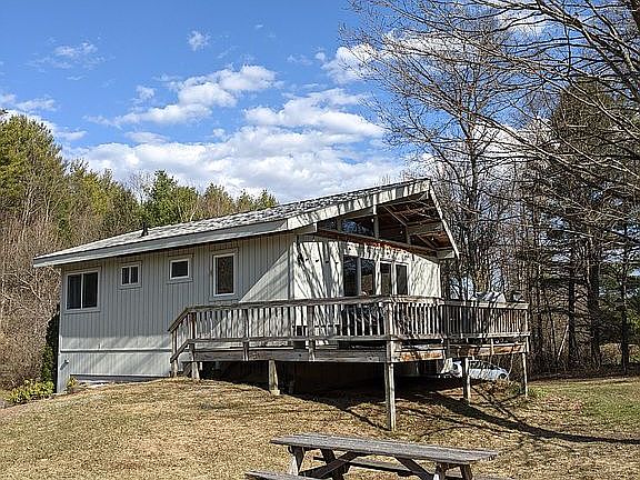 2 bedroom 1-1/2 bath open concept, contemporary, Deck House on a wonderful flat, open 2+ acre lot 2 miles from the town of Hartland. Hardwood floors, plenty of natural light, high ceilings, large deck, and a 2 car detached garage in a school of choice district. A 4.7kW, net-metered solar array along with a mini-split heat pump allows for comfortable, efficient, low-cost utility living. A Vermont Castings propane stove provides blackout proof, deep winter heat, tied to an Ecobee smart thermostat for convenience and control. High-Speed, fiber internet provides a blazing fast, reliable internet connection for the home office. The garage is brightly lit with LED lights and plenty of outlets, workbenches, and storage. The automatic garage doors make for easy, snow-free parking in the winter and leave ample room for projects in the summer. A shed addition on the back of the garage provides an easily accessible storage area for seasonal equipment and gardening tools. Over 50 nut, fruit, and berry plants along with daylilies, peonies, lilacs, and many more provide a beautiful, sustainable, outdoor environment, enjoyable all four seasons of the year. Located 1/4 mile from both Skunk Hollow Tavern, offering excellent drinks, dining, and live entertainment. Also, just down the road from Cedar Mountain Farm and Cobb Hill Cheese, providing farm fresh produce, dairy, and grass-fed beef.