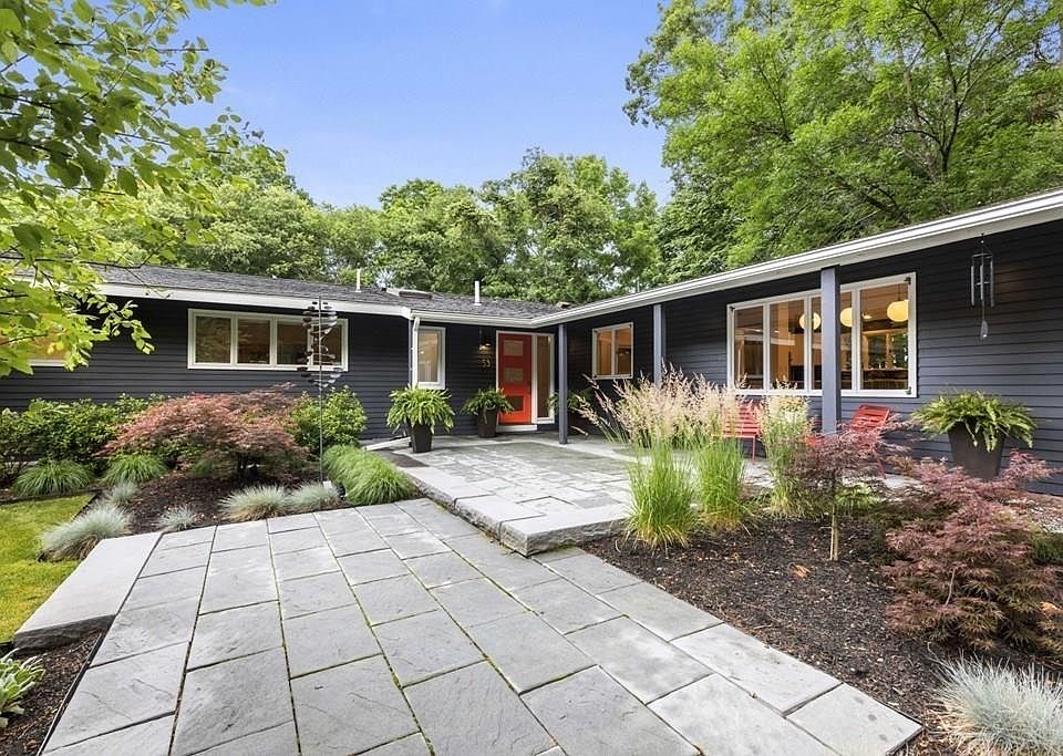 Matchless mid-century Atomic ranch, restored by owner, offers one level, open-concept-living at its finest. Enormous quartz waterfall island anchors luxurious new kitchen.Thermador appliance suite incl. induction cooktop w/Zepher hood. Abundant drawer and "hidden" storage, full pantry, and awesome work space will delight home chefs. Stool seating plus adjacent liv and din areas ideal for entertaining. Vaulted liv rm w/new marble fp is heart of home. Glass wall overlooking deck provides ample sun light. New renovated fam bath w/quartz double vanity. Study incl Elfa utility closet to keep all work-from-home supplies tidy. Pool view for one bdrm and garden views for other make each one special sanctuaries. Master wing offers privacy and sitting area. New floor-to-ceiling Venato Carrara marble mb delivers every day luxury. Two closets, one walk-in completes the suite. Cozy new carpet covers LL fam rm. Secret bdrm ideal for au pair or teenager.New liner for pretty olympian-esque pool.