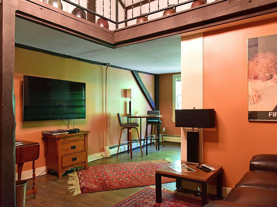 Comfortable, newly renovated and decorated two bedroom, two bath 2nd floor apartment (STAIRS) in a restored grist mill. Bedroom overlooking stream has a full size bed and private bath. 2nd bedroom has full size bed, pull out twin couch and private bath. Small kitchen, living/dining area, large screen TV with Directv , hi-speed internet, CD collection. Not suitable for small children. Downstairs is a dinner only restaurant. Prefer to rent for entire season...June 4th-Sept. 5th but will consider one month rentals. All utilities included. No smoking, no pets. Must utilize our cleaning person bi-weekly at additional cost.