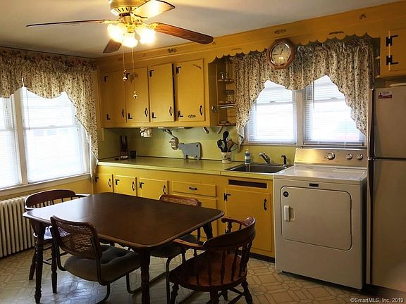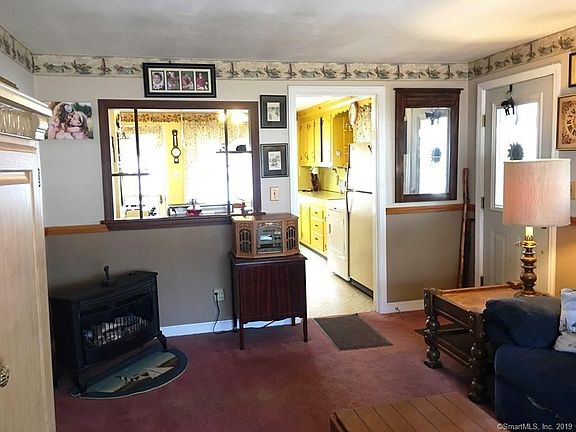 Cute ranch needs cosmetic updating... you decide how much and when. Foyer in front with closet and door to walk-up attic. Large living room features picture window and gas stove/heater leads to side porch. Original eat-in kitchen has gold cabinets, range, refrigerator, washer and dryer. Door leads out to enclosed porch/mudroom. Three good size bedrooms with lighted closets. Full bath has been partially updated. Hardwood floors throughout except kitchen. Full basement has hatchway and plenty of room for a workshop. Newer oil tank, hot water heat with radiators and domestic hot water. Central vac "as is". Outside there is an open side porch, vinyl siding, vinyl replacement windows. roof with architectural shingles. Detached 3 car garage with side door and very large .87 acre yard. No FHA or USDA financing. Only conventional financing. Zoned commercial! Right on RT 6!