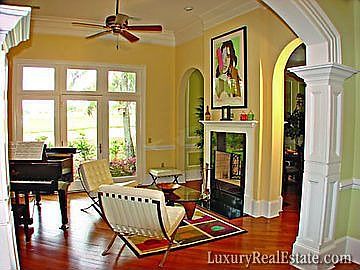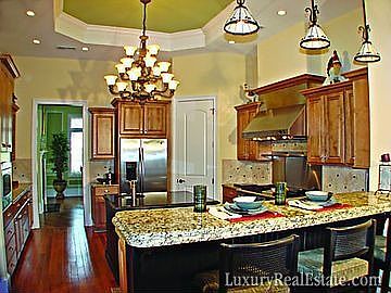 Swim year-round in the privacy of your enclosed screened “pool atrium”. This brand new home is built around the atrium which thus becomes an integral part of home s lifestyle. It seems as though the pool is an “indoor” pool. And by bringing the outside in, owners will feel like they re living in their own private, insect-free resort: pool, fountains, fire pit, pool-side dining and the twinkling of architectural lighting. The awesomeness of the pool atrium is mirrored by the awesomeness of the floor plan (check out the casita) and the high quality finishes. See below. • Atrium: totally screened in, custom designed wrought-iron lockable gate, heated pool, paver deck, two lion head fountains, tropical landscaping, gas fire pit, covered dining area, architectural lighting, Ducane grill, cabana bath, enclosed and protected pool equipment room. • All rooms (except one) face either the atrium pool or the beautiful 8th fairway of Belfair s acclaimed East Course. • Cul-de-sac location • Outside: paver drive, highly landscaped, custom wrought-iron lockable gate and 3 wrought-iron matching window grates • General interior: all downstairs rooms have 12 ceilings, Norco windows, 8 solid core doors, Kohler satin nickel plumbing fixtures, cat 5 wiring, pre-wired for sound system, chestnut flooring, extensive trim (crown, 12” base, chair rail), recessed lighting • Kitchen: veggie sink, pantry, two-tone maple cabinets with honey stain and mocha glaze, wine rack, two-tone granite (Santa Cecilia and Black Impala) • Family room: coffered ceiling with crown molding, gas fireplace, built-in cabinets and bookshelves, four panel disappearing glass doors out to atrium, breakfast area • Master suite: glass doors right out to pool and atrium, also glass doors out to fairway, tray ceiling, built-in reading lamps, two huge closets, frameless shower door, Kohler whirlpool tub • Casita: bead-board wainscoting, walk-in close