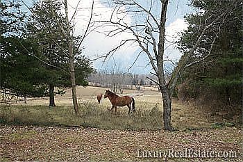 This New England Salt Box Reproduciton set on a charming country road with 1.5 acres offers expansive pastoral views. Fine historic details grace this well maintained home. Enjoy sitting by the exquisite brick fireplace in the spacious, vaulted and light-filled living and dining rooms. The eat-in kitchen was updated in 2006 with Carrera marble counter, custom cabinets with bun feet, Shaw farm sink, stainless appliances, Elmira Stove Works oven and a cozy brick fireplace. All four bedrooms have their own private bath, two on the main level and two on the upper floor. The ground level features a wonderful family room with a wood stove, workshop and access to the 2-car garage. The parklike setting is complemented by an in-ground pool, lovely flowering trees and established gardens. Enjoy views into neighboring pasture land where a horse or two will come if you call.