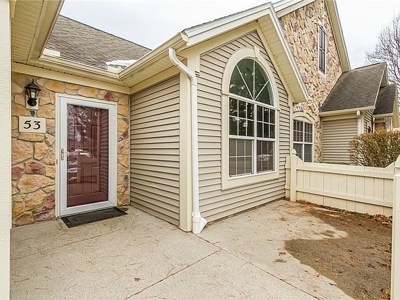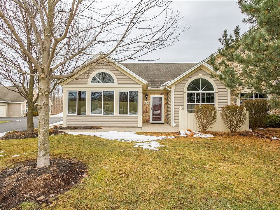 Welcome to 53 Maple Center Rd located in the Villas of Fieldstone townhome community in North Greece. Rare opportunity to own the only true 3-bedroom, 2 full bath home in the community, offering easy ‘one-step’ living with a touch of luxury. Built in 2007, the updated designer white kitchen provides a ton of storage, pantry closet, Quartz countertops, under & over Cabinet Lighting and a Sun Tunnel to assure maximum natural light. There is updated flooring in the kitchen and both bathrooms. Next to the first-floor laundry are custom built-ins by California Closets in the utility room (6'x5') as well as in the walk-in closet (7'x6.5')