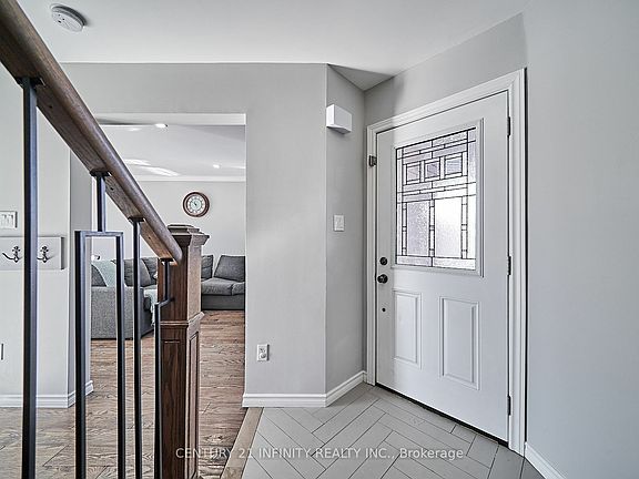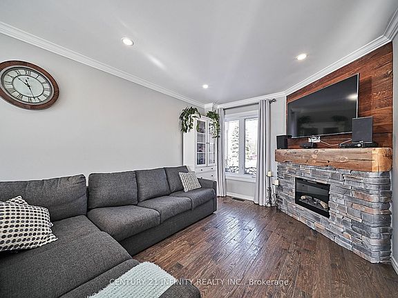 This beautiful 2 storey 3 bedrooms 2 bathrooms home is located in a highly desirable north Bowmanville family friendly neighborhood & is move in ready. It has an open concept kitchen done in 2023 with a combined living and dining, electric fireplace, freshly painted throughout, bathrooms 2023, windows and doors 2022, kitchen has W/O to deck & fenced yard. Basement is finished with built in TV & shelving unit. Kitchen has porcelain tiles and Corian counter. Main & 2nd have hardwood floors, basement has laminate. Close to all amenities, schools, grocery stores, parks, shopping, easy commute only 5 mins to 401, It has a partially interlocked driveway with walkway and more. Come see it today because this one won't last long!
