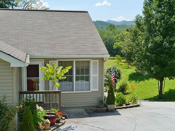 Easy living in the desirable Clark's Chapel area with a SPECTACULAR pond and mountain view! You'll enjoy convenient low-maintenance living, but with the country mountain feeling you're looking for. Built in 2004, this duplex (one side is for sale) boasts single-level living with 2 bedrooms, 2 full baths, laundry area, living room and kitchen all on one level. Walk out from either the eat-in-kitchen or the master bedroom to the peaceful screened-in deck and you'll be overlooking paradise, with a community pond and a sweet mountain view to enjoy. Downstairs boasts a HUGE storage area (could possibly be finished for a bonus living space) and a 1-car garage. There is interior access to the basement and garage, with an additional parking area on the main level for easy access. Paved to the door! Home is painted in neutral colors with a hardwood entry area, berber carpeting in the living room and bedrooms, and laminate wood-look floors in the kitchen. Lawn care is provided through the HOA and small pets are allowed. Call about this lovely home and start living the good life in Franklin NC today!
