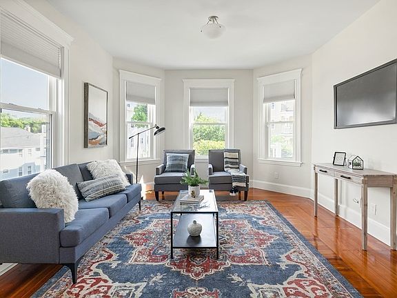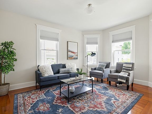 Natural daylight graces this elevated & renovated 1st floor 2 bed 2 bath. This bright unit checks many boxes w/ central air, in-unit laundry, an open layout, & outdoor space, including a private rear porch w/ direct access to the (common) fenced-in yard. The building’s elevation off the street allows for ample sunlight in all rooms, accented by high ceilings, crisp white trim, and gleaming wood floors. The open concept kitchen has white shaker cabinetry, SS appliances, breakfast bar & a dining area. Two bedrooms, one w/ en-suite full bath and another w/ a deep walk-in closet. All this in an incredibly convenient location w/ your choice of amenities & restaurants either along Centre Street in West Roxbury or down Belgrade leading right into bustling Roslindale Village, all under a mile from your door. Easy & ample street parking, no permit required. Skip the car & hop on the commuter rail at Bellevue, 0.2 up the road. Stop by Exodus Bagels on your way to work! 100% OO & Pet Friendly!