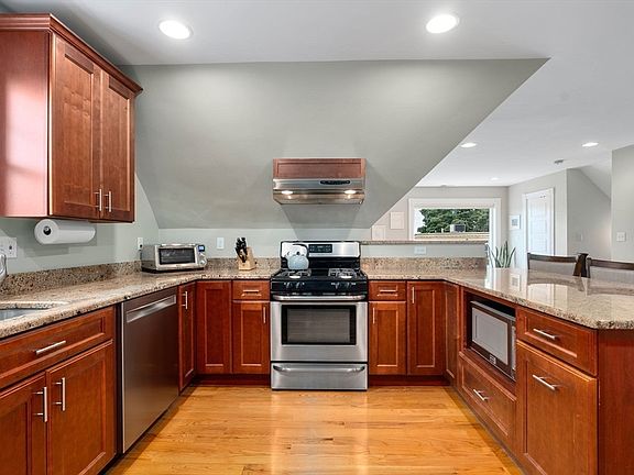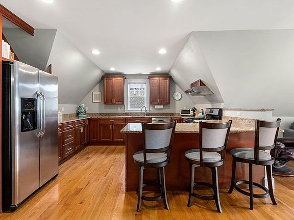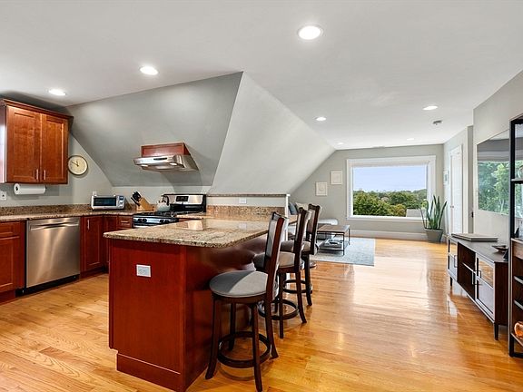 Open Concept, 2 bed/2 bath condo with chef's kitchen and amazing views of Boston! Do not be deceived by the eaves- excellent ceiling height and flooded with light! The details and charm were not eliminated during the condo conversion. Spacious living room with picture window opens to spacious kitchen with ample cabinetry and counter space, gas range, stainless appliances and breakfast bar seating. The primary bedroom easily accommodates a king sized bed and has a lovely ensuite bath. The second overlooks the lovely yard space. Deeded private yard space, private storage locker in basement, exclusive use of attic and in-unit laundry. With a convenient location with various commuting options, privacy, high end finishes and plenty of space- this is IT! Close proximity to Bellevue Commuter Rail, Forest Hills Station, ample shopping, dining & entertainment on nearby Centre Street in WRox + Rozzie Village