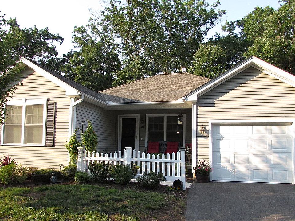 Due to a business relocation, this unique 7-year young Ranch Style home is now on the market! Welcome to Newberry Village, an active adult community nestled in rural East Windsor. This unit is a Newberry design boasting an open floor plan, first floor laundry room and foyer access to an immaculate one car garage with overhead storage. There are two bedrooms and two full baths. The master bedroom features a walk-in closet, full bath with step in shower and heat lamp. Second bedroom has a custom closet, adjacent full bath with tub. The spacious kitchen boasts a pantry, granite counter tops with under cabinet lighting along with beautiful Travatine stone backsplash and stainless-steel appliances (refrigerator purchased in 2020). The three-sided gas fireplace with stone facade and custom mantel can be seen from every room of the house. Hardwood flooring is throughout. The four-season sunroom is open from the dining area with access to the patio. A partially finished basement offers another additional 1200+ square feet which includes a 8'x10' cedar closet for extra storage space. Home is equipped with C/A and is hard wired - plumbed for use of a generator. Exterior features a front covered pouch and rear patio which are both facing scenic woods where you can hear the birds singing in the morning to start your day. Newberry Village is surrounded by 110 acres of conservation land. Conveniently located to shopping, restaurants, medical facilities, major highways and minutes from Bradley airport. Newberry Village is a secluded, quiet, pet friendly community and has LOW HOA fees! This active adult community can be sold to 20% under 55+. Make Newberry Village your next destination for easy carefree living! This property is listed For Sale by Owner reducing cost for both parties. 2.5% commission to Buyer’s agents. Listed price is $324,500. Call 860-471-2911 to schedule a showing.