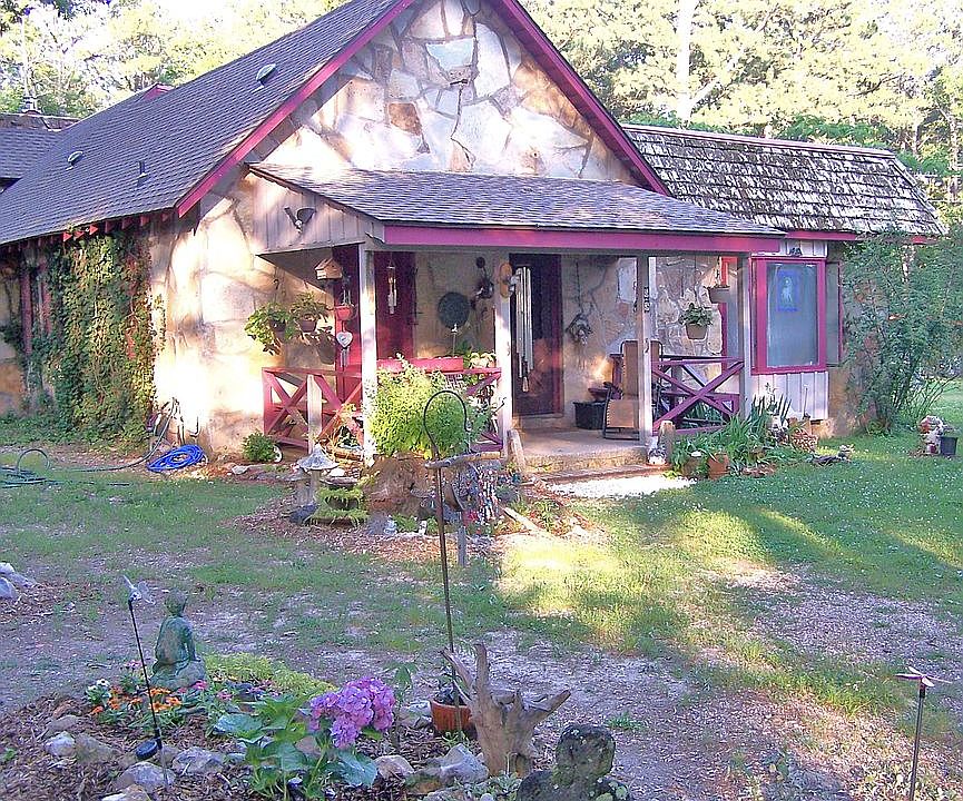 This unrestricted estate is unlike any home ever experienced. It has the historic appeal, with all the modern conveniences. Only 1 mile from beautiful Beaver Dam and 7 miles from Historic Eureka Springs, it boasts an historic stone building, originally a 20x40ft. school house, built in the 1920's. During the 1960's, this was remodeled and converted to become a spacious home. With the addition of a 2nd school house from Texas, a fabulous oak staircase from Kansas and a gorgeous hand-built fireplace with incredible stonework/crystals, geodes/petrified wood and fossils, this home has charm and character. There are 2 spacious living rooms; one with a fireplace, the other with a wood stove. Each room has it's own heat/air unit for personal comfort, cost-efficient heating & cooling. The floors throughout are wood, and the 2.5 bathrooms have been remodeled with new fixtures and imported porcelain tile floors. There are 2 spacious bedrooms; the main bedroom is upstairs with an en-suite bathroom. The kitchen has been upgraded with granite counter tops, the original solid wooden cabinets have been restored. The appliances are about 7 years old and in excellent condition. The washer & dryer have extended warranties valid until 2021. There is a study/rec. area and plenty of storage space throughout. Adjacent is a 2-storey income/ guest/artist cottage, with a large, sunny upstairs bedroom and 1½ bathroom. The cottage has its own full size laundry room. Other buildings include a new 2-car metal carport, enclosed 3 sides with a large shed attached, as well as 2 other storage sheds. These building all have electricity. There are several raised beds in the garden for organic crops as well as a chicken coop with a fenced-in run. Additional improvements to the property include a new well in 2011 that is 525 ft. deep, the roof is about 8 years old, and the plumbing and electricity have been upgraded. This unique wooded unrestricted 10.25 acre property offers the perfect venue for a tranquil retreat; a mini-farm; lodging or whatever inspires your imagination.