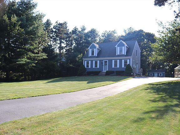 Welcome to Myles Standish Drive! This Cape Cod style home on 1.39 acres offers 3 bedrooms, 1.5 bathrooms, a finished basement and a separate home office in the backyard. Meticulously maintained and move in ready. The first floor has gleaming hardwood floors, a half bath, and a breakfast nook leading to a deck. A new dishwasher, plenty of closets, and a home security system are included. The second floor features three bedrooms and a full bathroom.The finished basement has a spacious bonus room with an additional 300sf (not included in GLA) A 12x20 structure in the backyard with A/C and heat offers another additional 240sf (not included on GLA) is perfect for a home office. If you work from home, this is a dream come true. There's also a greenhouse with built-in plant beds, and the property also has an irrigation system. The gutters include LeafFilter gutter guards with a transferable lifetime warranty.Enjoy proximity to Myles Standish State Forest and easy access to major routes 495, 1