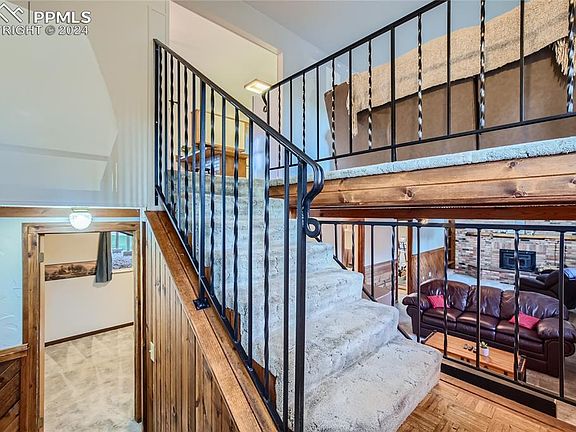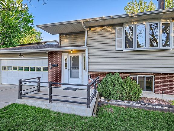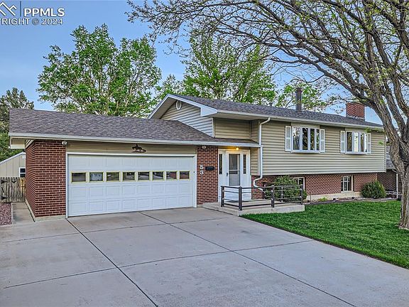 Wonderful home that the owner's family built and he purchased in 2002. Located at the top of a circular street that is quiet and a fantastic neighborhood that is tucked away. The grounds are beautifully maintained and parklike. Pride of ownership in this gorgeous home! As you enter up the stairs into the family room with a bay picture window and wood burning stove you can imagine cozy winter nights. Onto the kitchen dining area complete with wood floor, breakfast bar, gas cooktop and pantry. Walk out to a covered deck and walk down into the magical yard and large concrete patio, perfect for entertaining. Back inside the primary bedroom was enlarged by taking another bedroom out and adding a large walk in closet and primary bathroom with a jacuzzi spa tub! Fabulous bay window in the bedroom makes this is a retreat! Downstairs off the entry is a finished, oversized garage that has a door to the yard. Down the stairs to the enormous family room with a bedroom and bath. The laundry room has a workbench and is perfect for crafts, etc. The large family room was enlarged by taking down a bedroom wall that could be put back up and a third bedroom added. This wonderful family home has been lovingly maintained and beautifully landscaped through the years. Close to schools, shopping, military bases and major arteries, yet a world away in your Colorado retreat! make this amazing home yours!