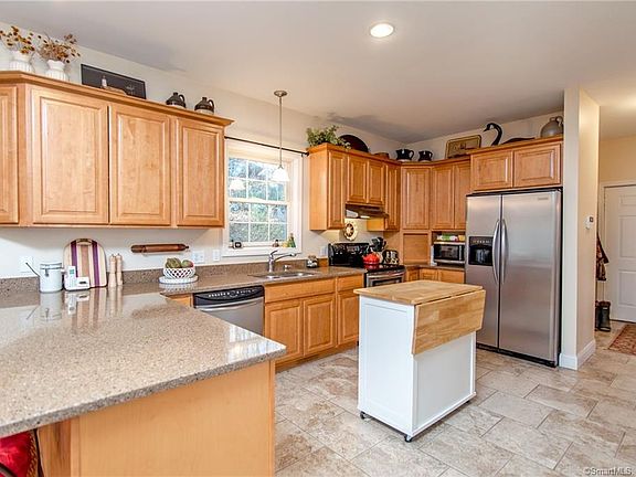 Lisbon colonial in excellent condition! 4 bedrooms, 2 1/2 baths, 9 ft ceilings, nice kitchen with maple cabinets, stainless appliances quartz countertops, hardwood floors, 1st floor laundry, formal dining room, partially finished bonus room over the oversized garage. Beautiful tiled sunroom with cathedral ceilings and large windows, paved driveway and shed.