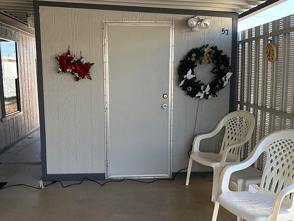 This is it. Awesome corner lot in the beautiful 55+ park of La Casa Trail. Owners have taken lots of pride in taking care of this home. Beautiful home inside and out. Both bathrooms have been remodeled with travertine showers and new vanities. Bedrooms are good sized with double closets in both. Fully furnished and ready to move in. All windows have 2 windows to keep heat and cold out. Large screened in porch about 7X30 feet with locking screen doors on both ends and additional covered patios on both sides. Nice storage shed outside with light and lock. Carport fits 2 cars. Sunscreens for windows in front of the home (kitchen/dining room). All windows have been caulked around to keep air from leaking out. Bring your clothes and move on in.