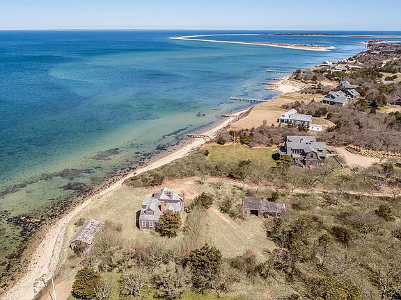 Superlative Waterfront Opportunity On Chappy's North Neck Road - This beautiful low bank waterfront property enjoys sweeping views across Edgartown Harbor and extending north to Nantucket Sound -- and the westerly exposure affords spectacular evening sunsets year-round. The property features a stone revetment along the shoreline and there is a set of stairs that leads down to the 170-foot private sandy beach. The 4.2-acre property spans across both sides of North Neck Road, offering a myriad of opportunities and the existing 1930's structures offer an opportunity to work with the existing building footprints, as desired. Come and explore the possibilities of building your idyllic Chappy retreat in this most magical waterfront setting.
